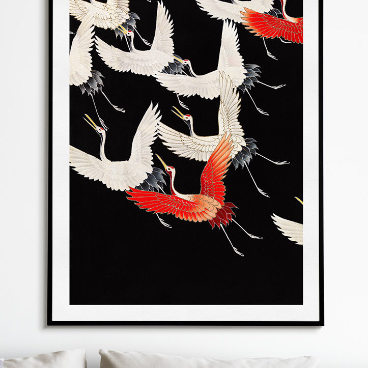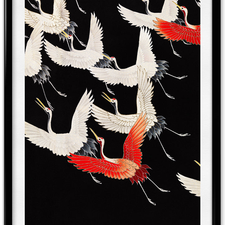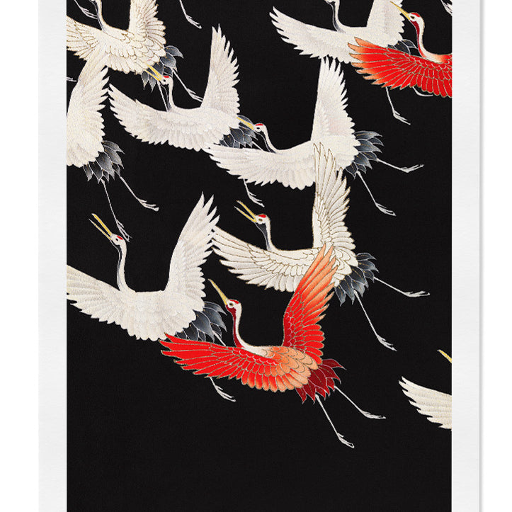 Japanese flying cranes vintage illustration. A beautiful retro style bird print. Furisode with a Myriad of Flying Cranes (1910–1920) by anonymous. Original from The Rijksmuseum.
