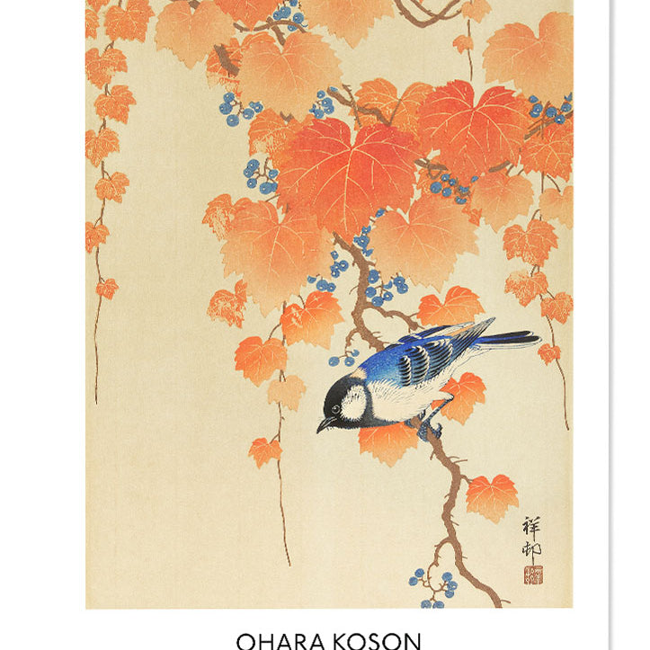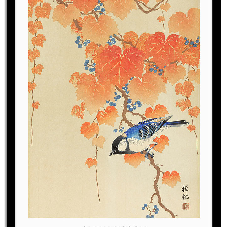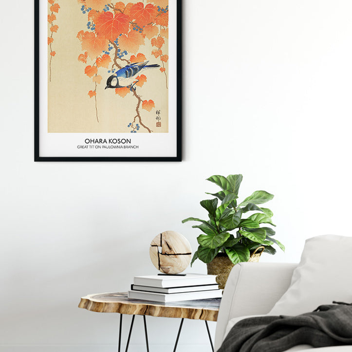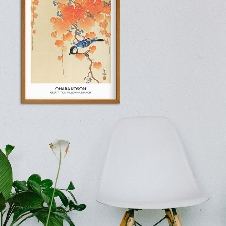 Great Tit on a Branch art poster by Ohara Koson. Vintage Japanese wall art.
