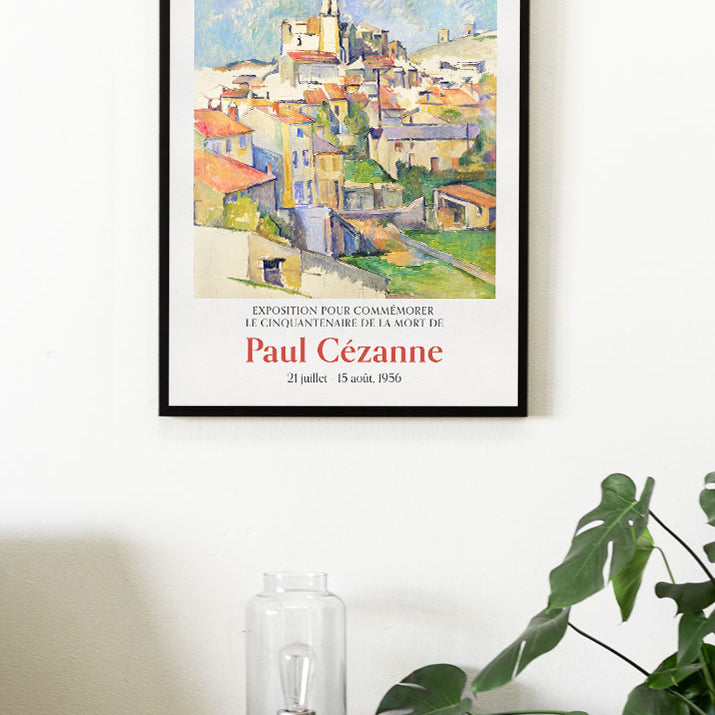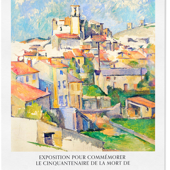 Paul Cézanne exhibition poster showing his landscape painting 'Gardanne'. Cézanne is one of the great Post-Impressionist painters of the 19th century, renowned for his landscapes, portraits, and complex still-lifes.