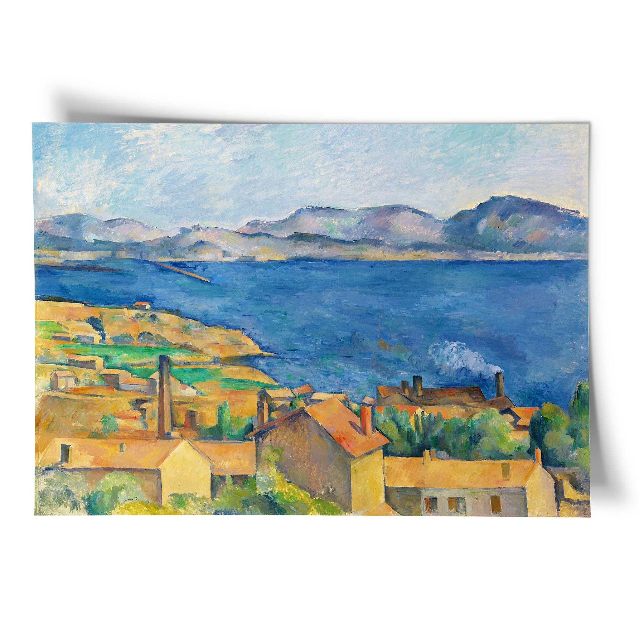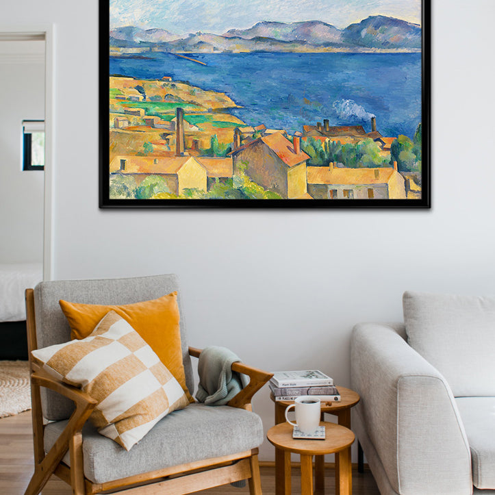 Paul Cézanne poster featuring his artwork The Bay of Marseilles, Seen from L'Estaque. Cézanne is one of the great Post-Impressionist painters of the 19th century, renowned for his landscapes, portraits, and complex still lifes.