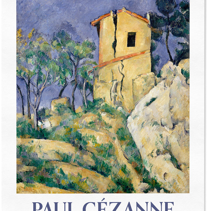 Paul Cézanne poster featuring his artwork The House with the Cracked Walls. Cézanne is one of the great Post-Impressionist painters of the 19th century, renowned for his landscapes, portraits, and complex still lifes.