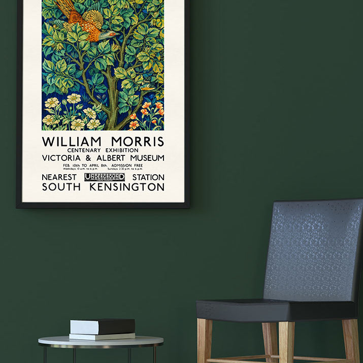 Explore the exquisite work of William Morris with the 'Pheasant' exhibition poster. This vintage bird illustration, reproduced from the Victoria and Albert Museum, is one of Morris's most renowned pieces. Bring a touch of natural beauty and historic art into your home or office.