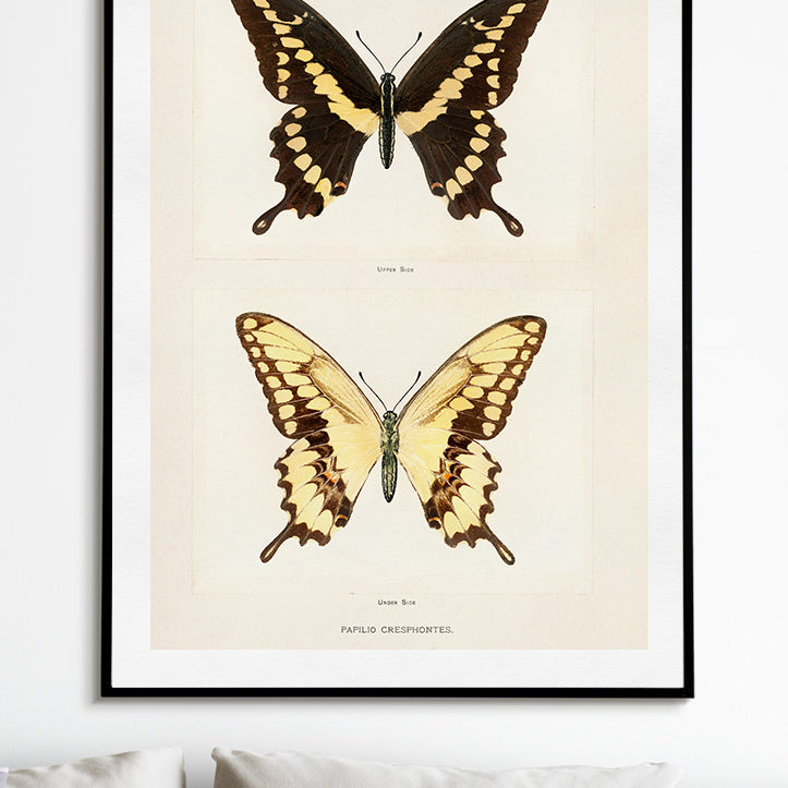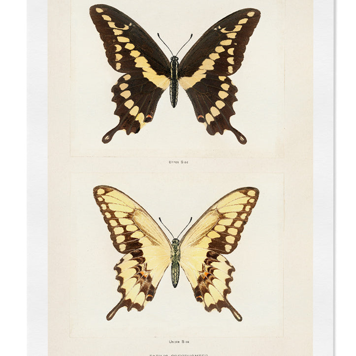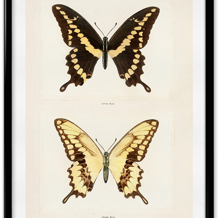 High quality reproduction of a vintage art print of butterflies.