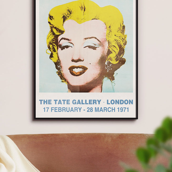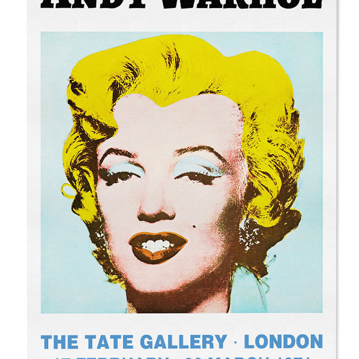 Modern art exhibition poster by Andy Warhol featuring his painting of Marilyn Monroe.