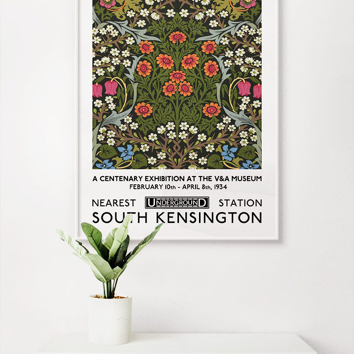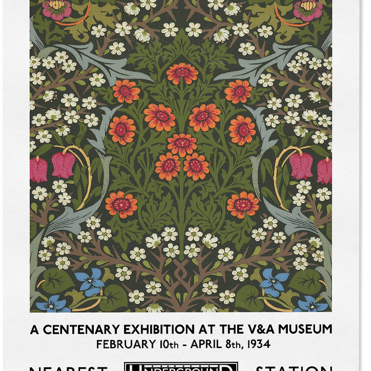 This reproduction of a vintage William Morris exhibition poster displays a remarkable green and brown floral art piece known as Blacktorn. Printed on high-quality paper, this poster is ideal for any room. Obtain your own reproduction of this outstanding artwork now and relish in the timeless elegance of William Morris' art.