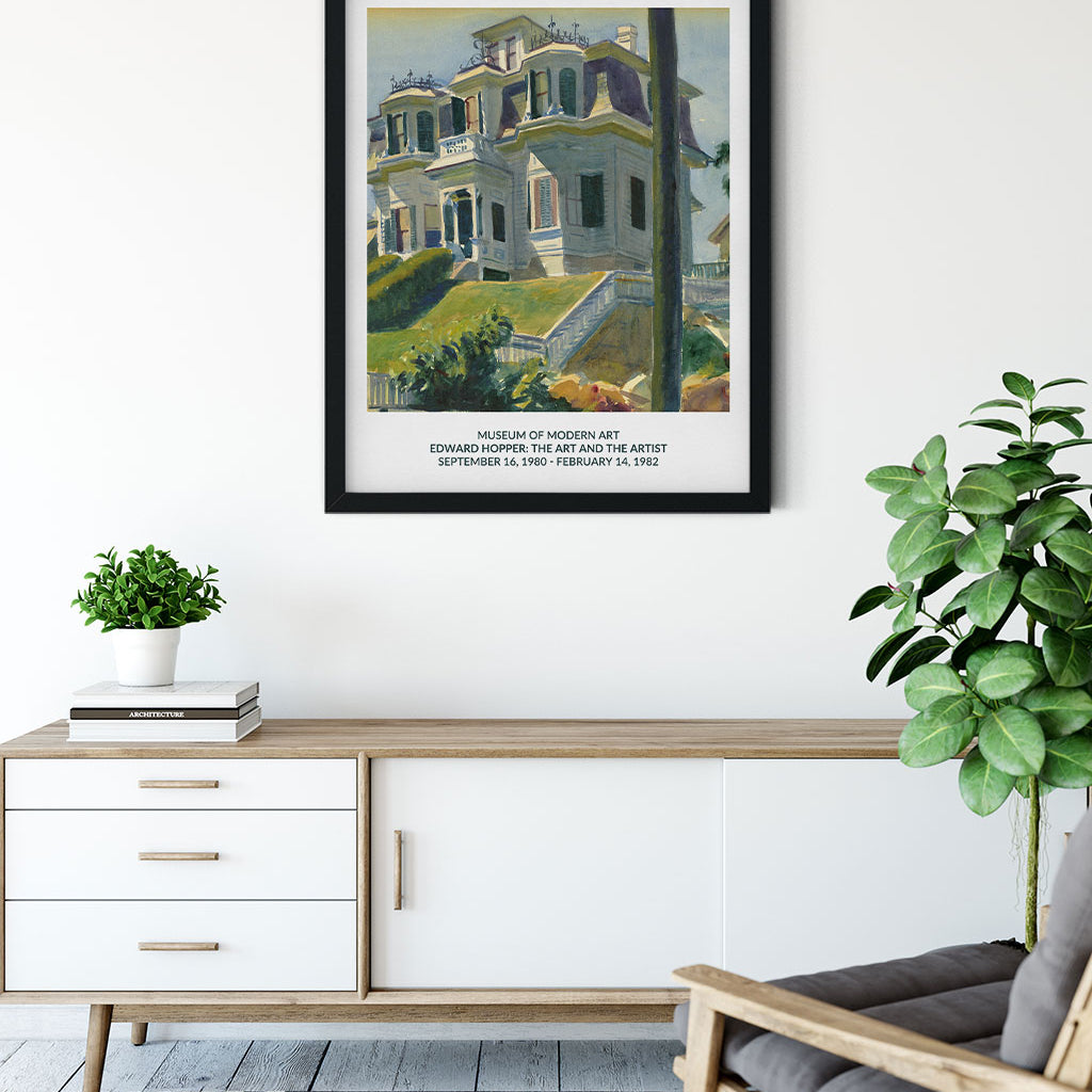 Edward Hopper art exhibition poster, showing his painting the Haskell's House.
