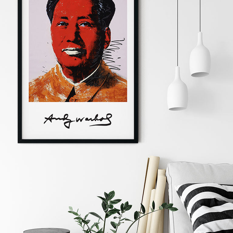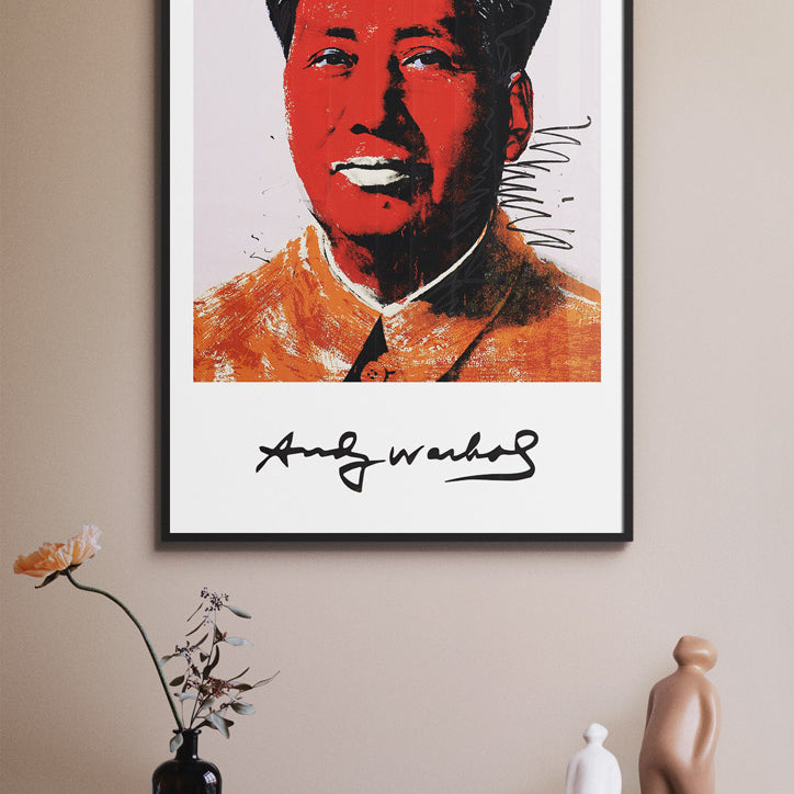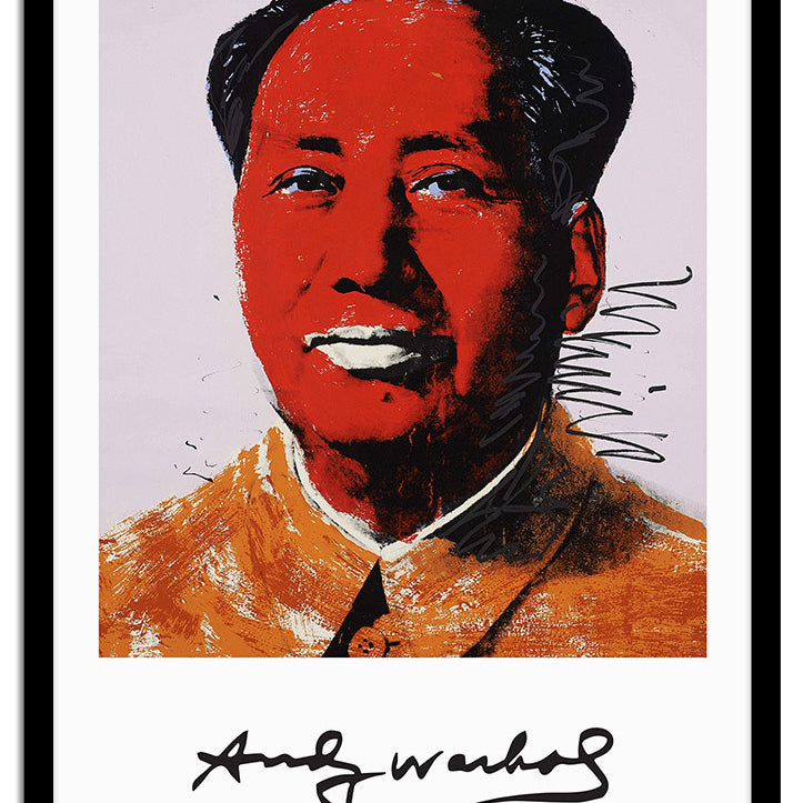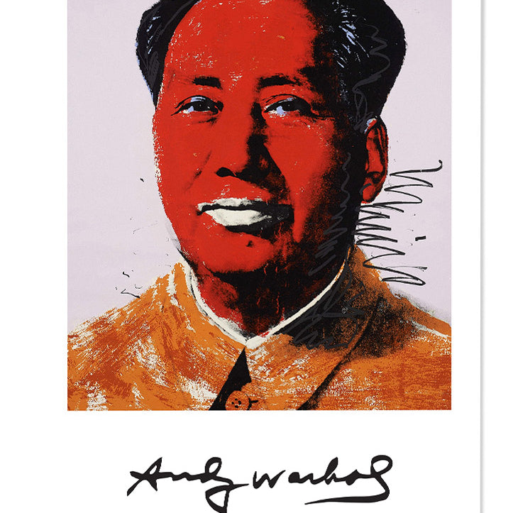 Andy Warhol's abstract portrait of Mao with the artist's signature at the bottom.
