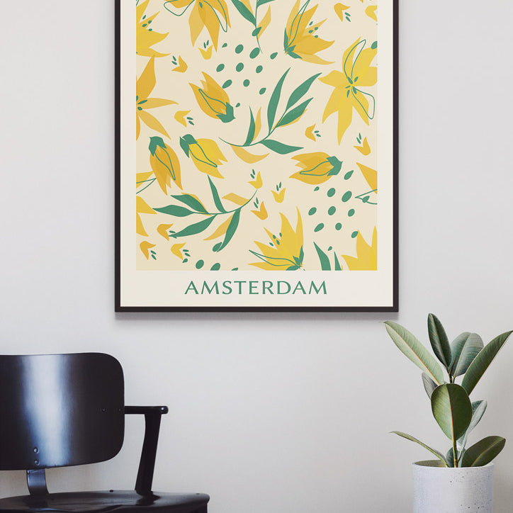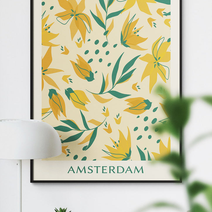 Amsterdam Flower Market poster with yellow and green flowers. See the full Flower Market Collection here >