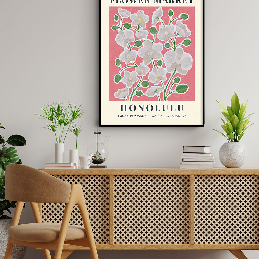 Honolulu flower market poster printed on premium matt poster paper. See the full Flower Market Collection here >