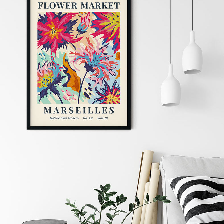 Floral art poster of Marseille, France. See the full Flower Market Collection here >