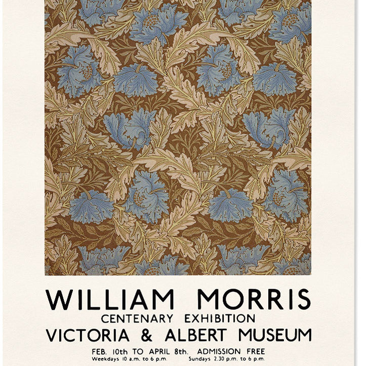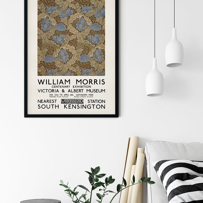 Reproduction of a vintage William Morris exhibition poster held in 1934 in the Victoria and Albert Museum. This vintage wall art can be a perfect decoration for your home.