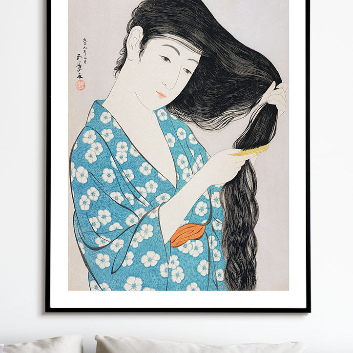 Woman Combing Her Hair Art Print by Goyō Hashiguchi