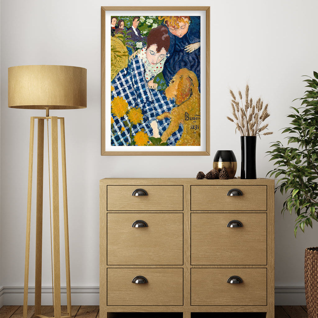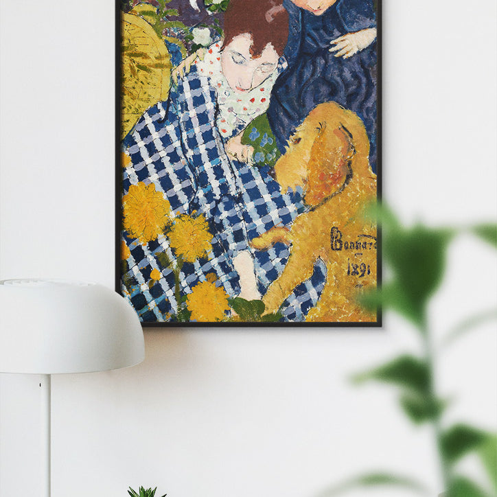 Art exhibition poster by Pierre Bonnard featuring his painting the "Woman with Dog". Pierre Bonnard was a French painter, illustrator and printmaker, known especially for the stylized decorative qualities of his paintings and his bold use of color.