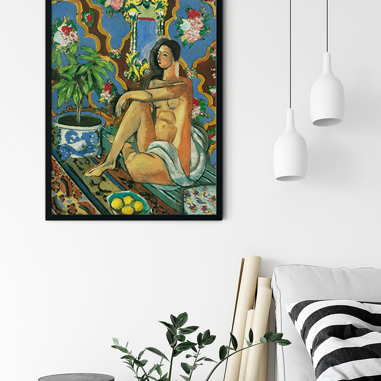 Henri Matisse art print, featuring his painting the Decorative Figure on an Ornamental Background Enjoy a timeless piece of artwork in your home with this Henri Matisse print, featuring the captivating "Decorative Figure on an Ornamental Background" in vivid colors.