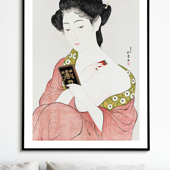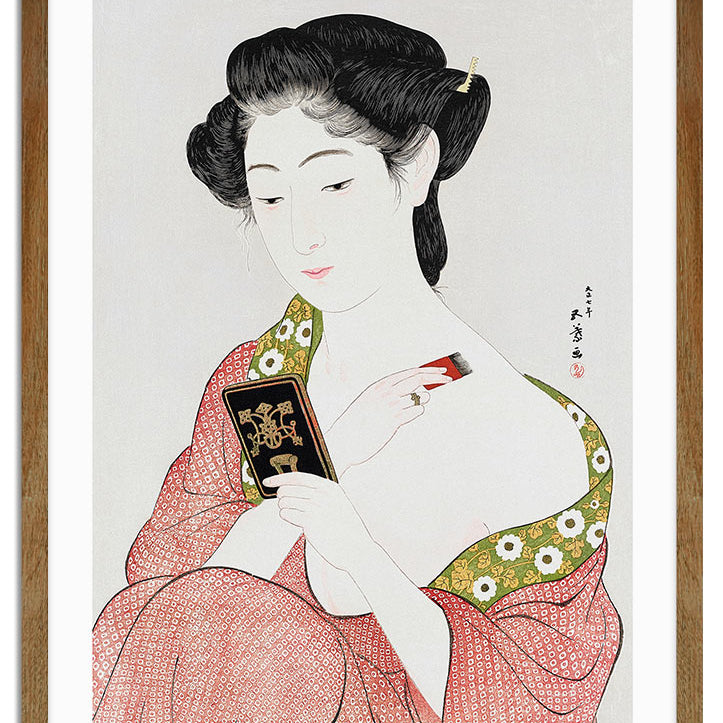 Vintage Japanese wall art. Woman Applying Powder art print in high resolution by Goyō Hashiguchi.