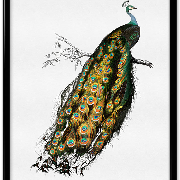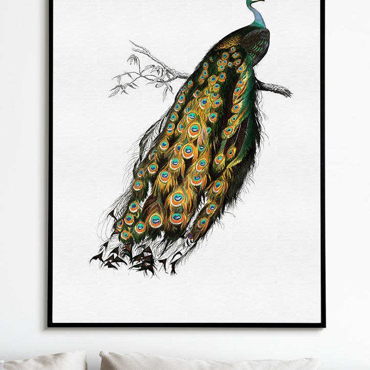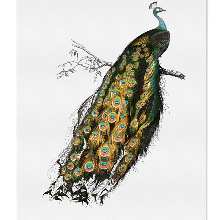 Indian peafowl (Pavo Cristatus) illustrated by Charles Dessalines D' Orbigny (1806-1876). Digitally enhanced from the 1892 edition of Dictionnaire Universel D'histoire Naturelle.